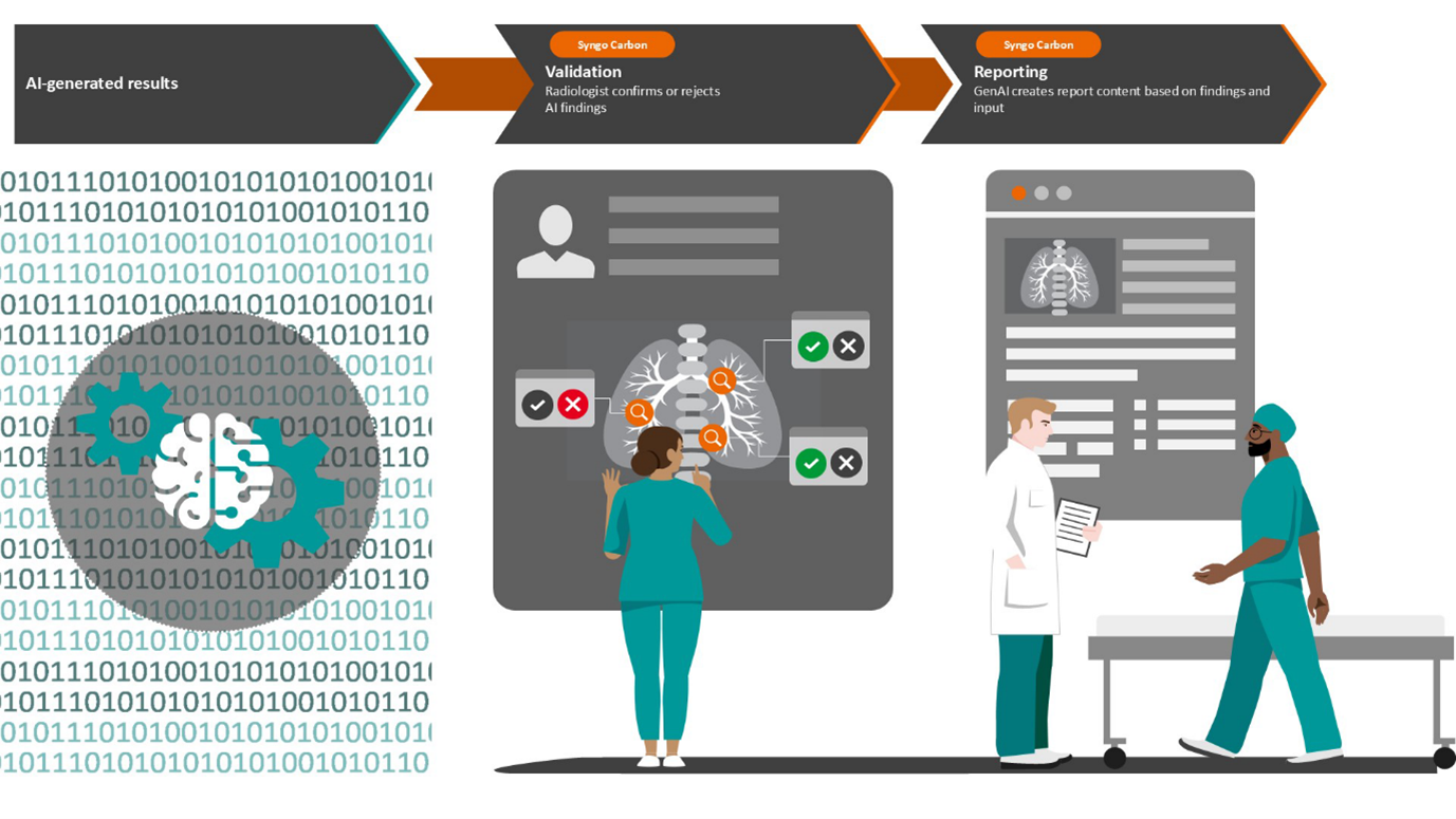 Seamlessly connect insights to action with AI-powered workflows designed to minimize manual effort and maximize efficiency. Syngo Carbon enables a continuous flow of AI-generated findings throughout the entire reading and reporting process. From AI-based detection, to radiologist review, and through to GenAI-assisted report creation – Syngo Carbon leverages AI at every step to deliver a streamlined, end-to-end experience.