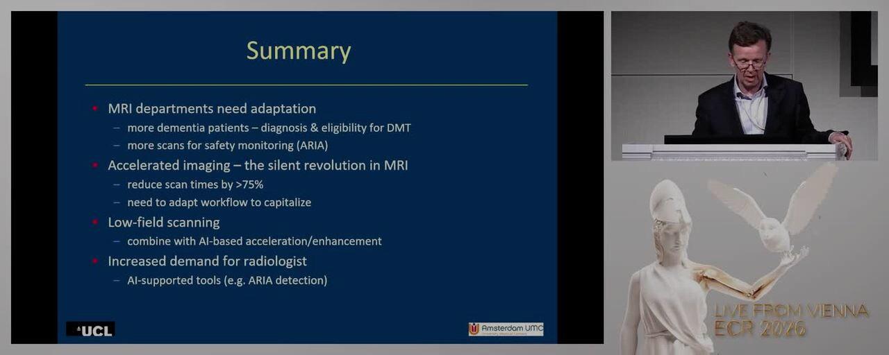 Watch the recordings below for a day filled with exciting sessions presented by thought leaders. The sessions move from a clinical overview of dementia and the basics of Alzheimer's imaging to cutting-edge techniques that support diagnosis and clinical decision-making as well as ARIA Imaging in the era of new therapies. And the important question: how ready are healthcare systems for the paradigm shift in Alzheimer’s disease in this new era of DMTs?